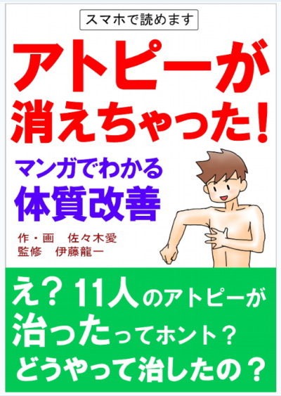 リノール酸が体内に溜まった状態で、たんぱく質を摂りすぎると、胃の中で消化しきれずに二つが混ざり合ってかゆみとして現れます。アトピーを改善するためには、たんぱく質の摂取を控える必要があるので、「和食」がおすすめなのです。こうした内容を漫画にして原因物質が体内で分解されずに逃げる様子とか、体内で分解作業をしている成分たちの働きなどをおもしろくわかりやすく紹介しています。